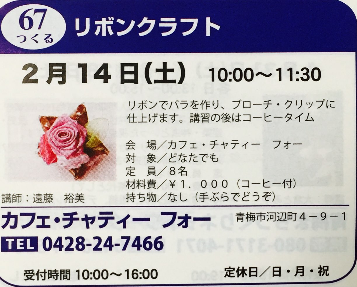 カフェ&ギャラリー チャティーフォーさんでは、『リボンクラフト』を受付中です!