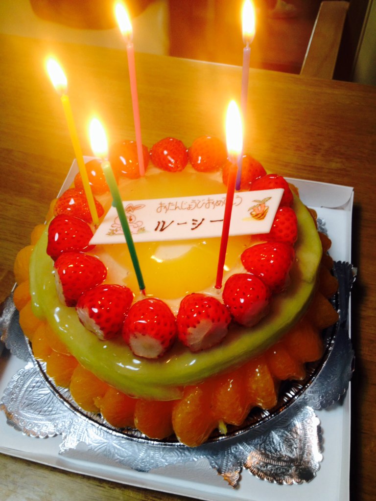 なんとお客様がルーシーの為にお誕生日のケーキを用意してくれたんです!
