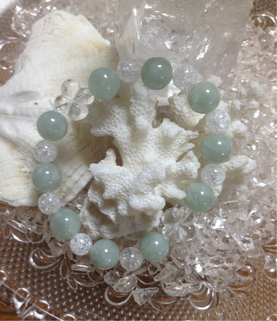 S様はパステルの翡翠とクラック水晶、水晶のクロスフラワーを使っています。