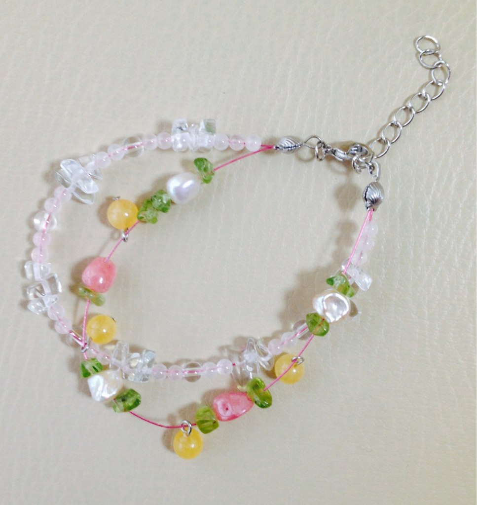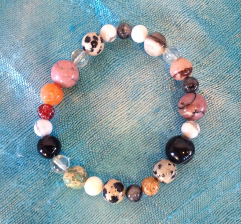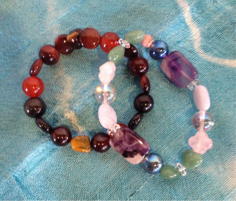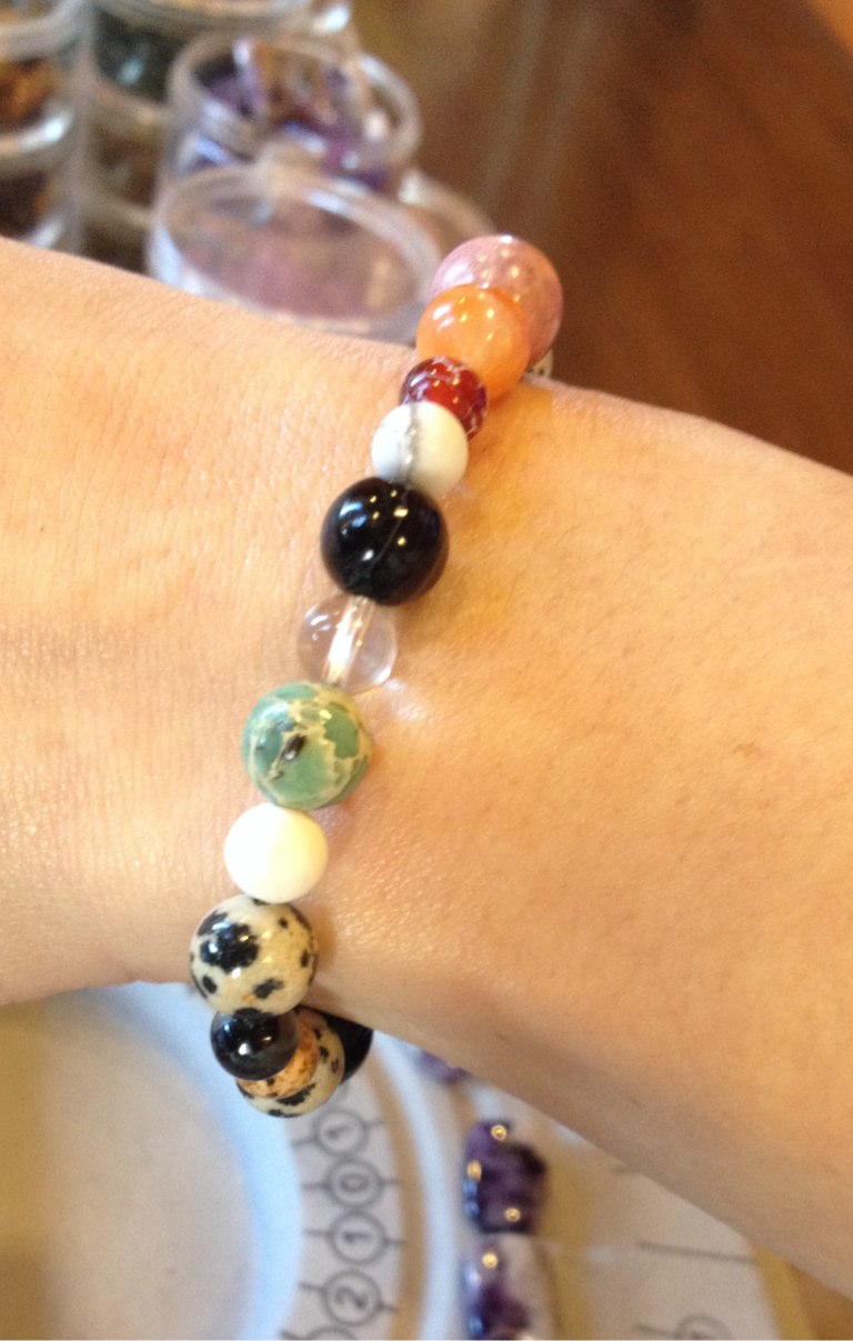 他に、それぞれお持ちのブレスレットの一部の石を組換えて、今回のワークは終了です。