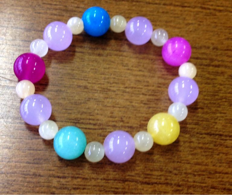 凄い決断力でカラフルジェードのポップで可愛いブレスレットになりました!